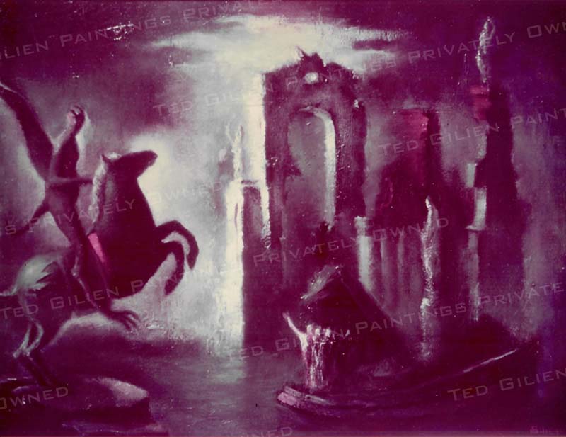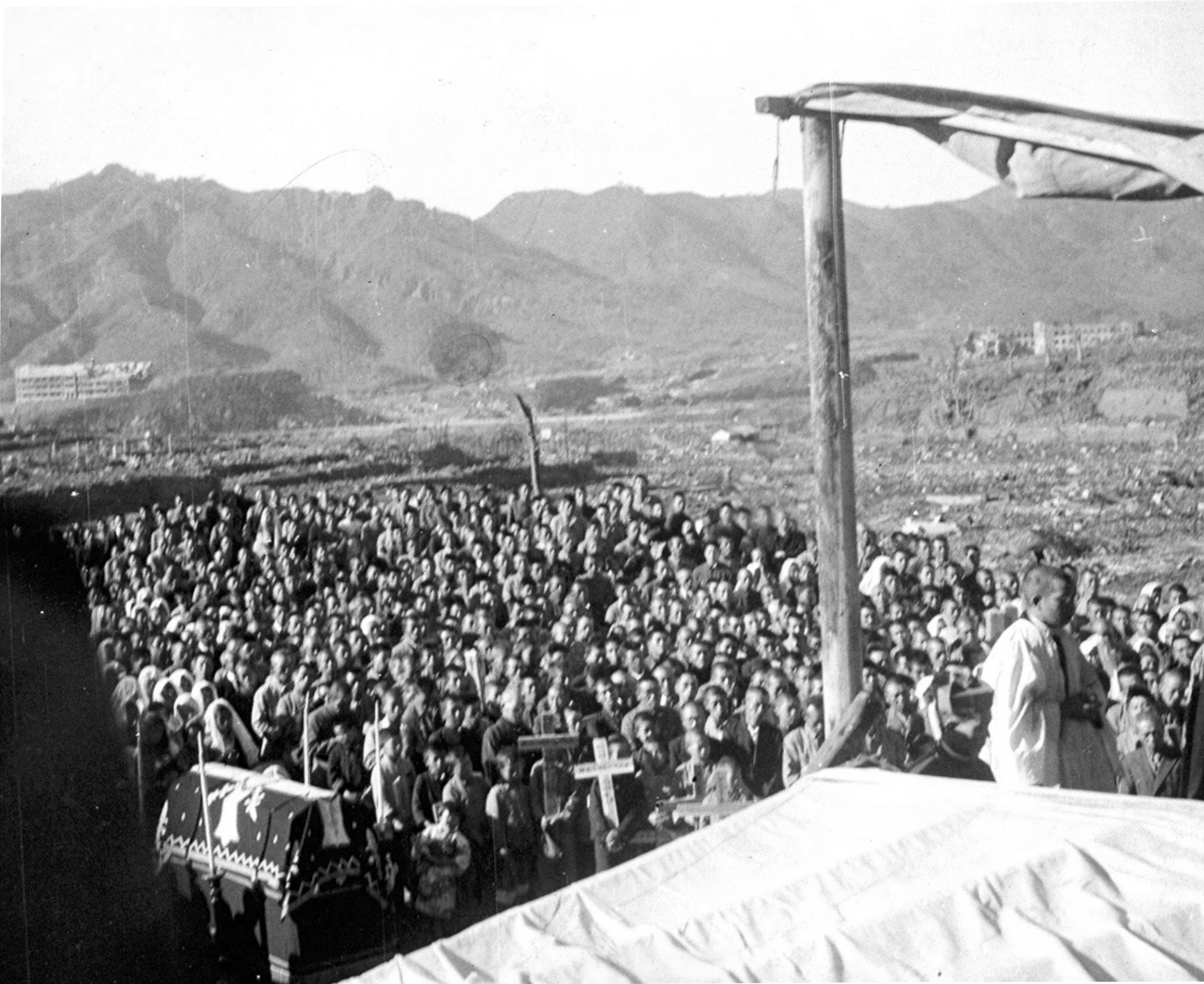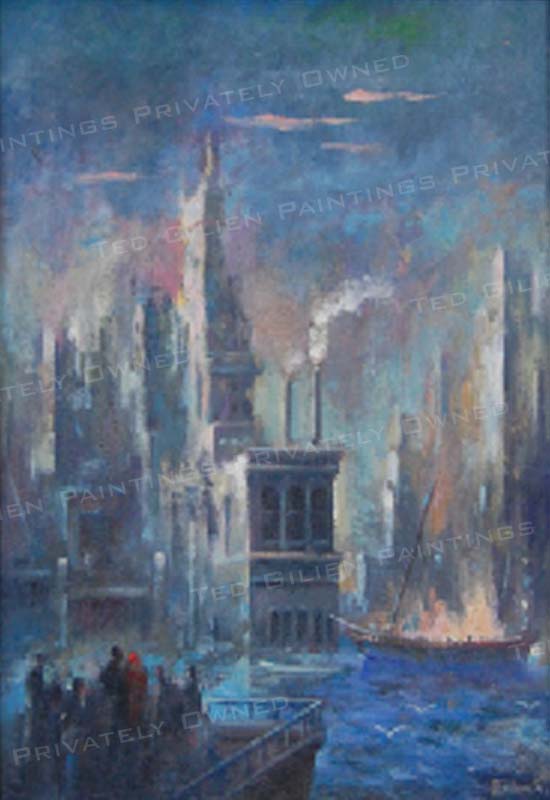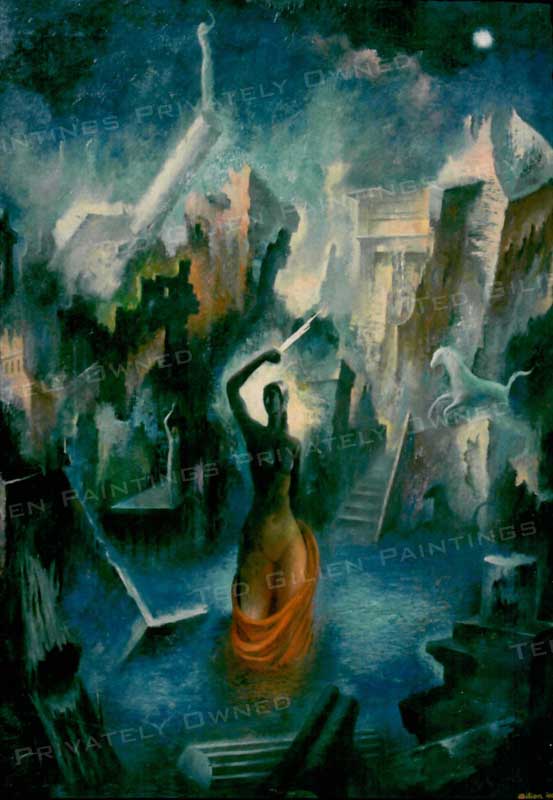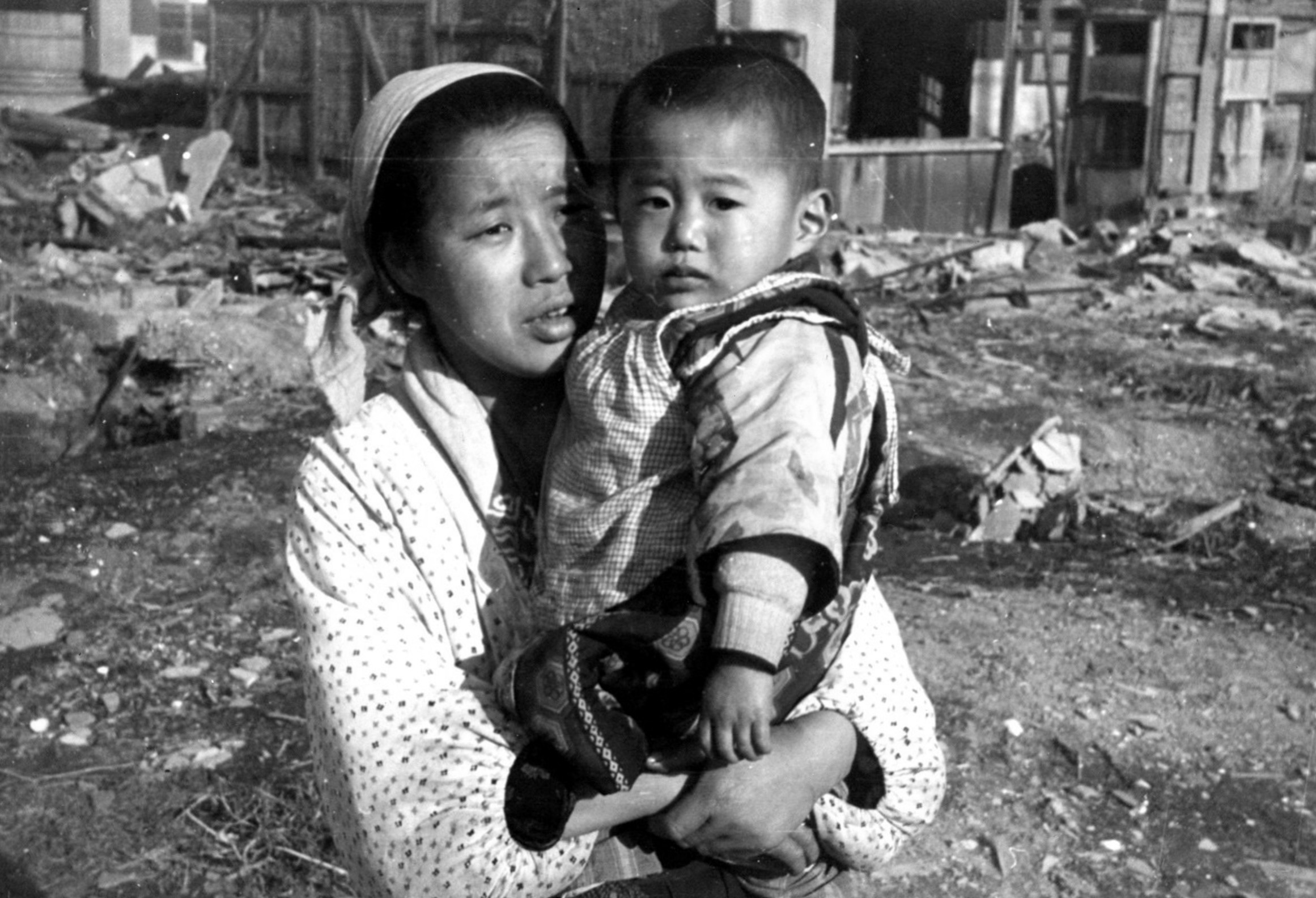 Ted Gilien (1914–1967) was an American painter, muralist, and photographer whose work often confronted the human consequences of war. Born in Brooklyn, New York, he studied at the Art Students League and the National Academy of Design before working as a muralist in the Federal Arts Project during the 1930s. During World War II he served as a U.S. Army combat artist in the South Pacific, where he documented the aftermath of the atomic bombings in Japan. Gilien traveled through devastated cities such as Nagasaki, producing photographs and sketches that recorded destroyed buildings, displaced civilians, and the harsh conditions of postwar life. Many of these photographs later served as source material for his paintings and anti-war imagery.
