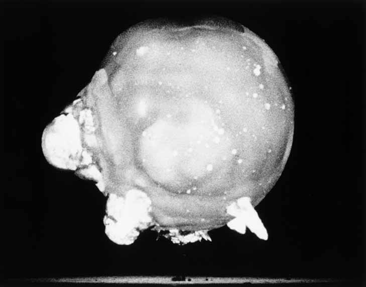 Atomic Bomb Explosion—1, 1952Nuclear explosion from the Tumbler-Snapper test series in Nevada, circa 1952 photographed by a rapatronic camera less than 1 millisecond after detonation. In this shot, the fireball is about 20 m (66 ft). The spikes at the bottom of the fireball are known as the rope trick effect.The detonation of Boltzmann (12 kt)) during Operation Plumbbob – 28 May 1957. In this rapatronic image the spikes below the fireball are the shot tower support cables vaporizing as they absorb thermal radiation – known as the ‘rope trick’ effect. (Photo via sonicbomb)Harold E. Edgerton, Atomic Bomb Explosion, before 1952, printed 1980, gelatin silver printHarold Eugene Edgerton