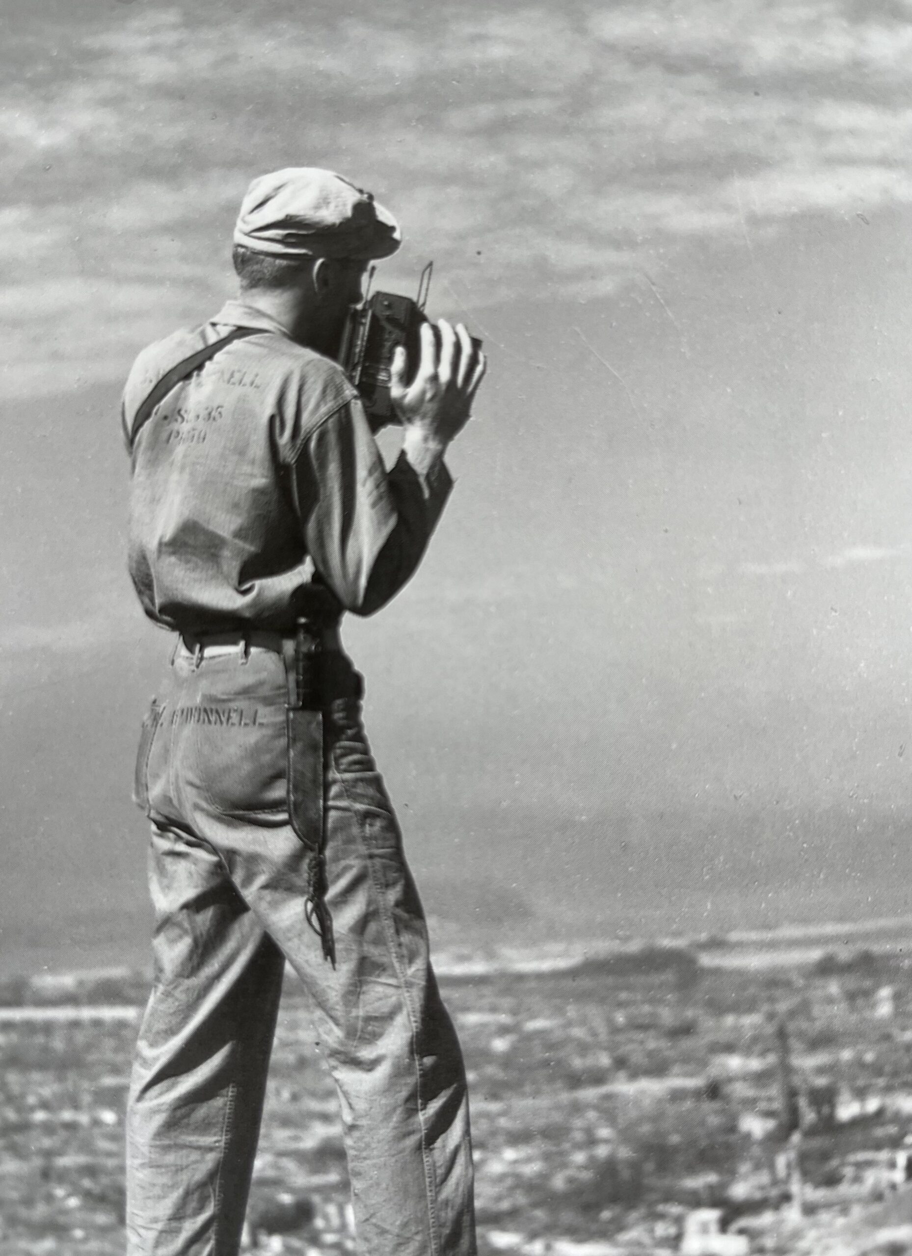 His most famous work was documenting photographically the immediate aftermath of the atomic bomb explosions at Nagasaki and Hiroshima, Japan, in 1945 and 1946 as a Marine photographer. The iconic “The boy standing by the crematory” is one of his works.